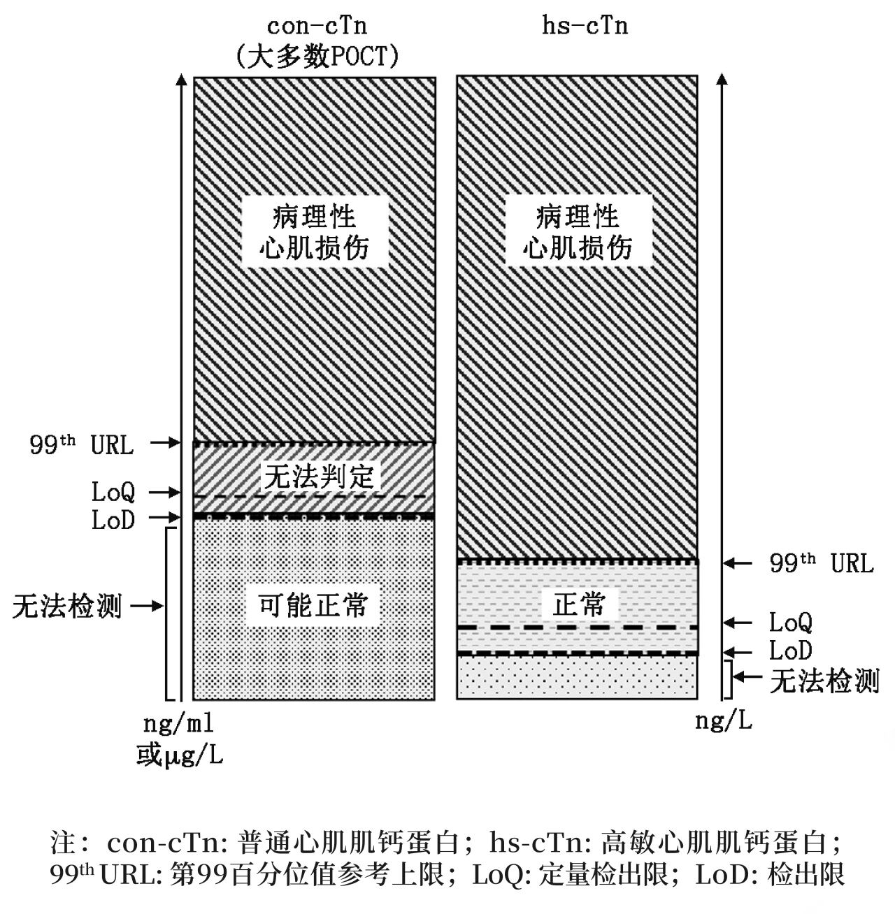 需要注意的是,不同hs?cTn試劑方法學具有不同的LoD和定量檢測限(limit of quantification,LoQ),應采用絕對濃度變化值作為閾值。不同性別的心臟質量、激素和代謝等具有差異,hs?cTn由于靈敏度高,故其99th URL在男性和女性中也存在顯著差異,在臨床實踐中采用性別特異性參考值對于提高診斷準確性和改善預后評估具有重要意義。