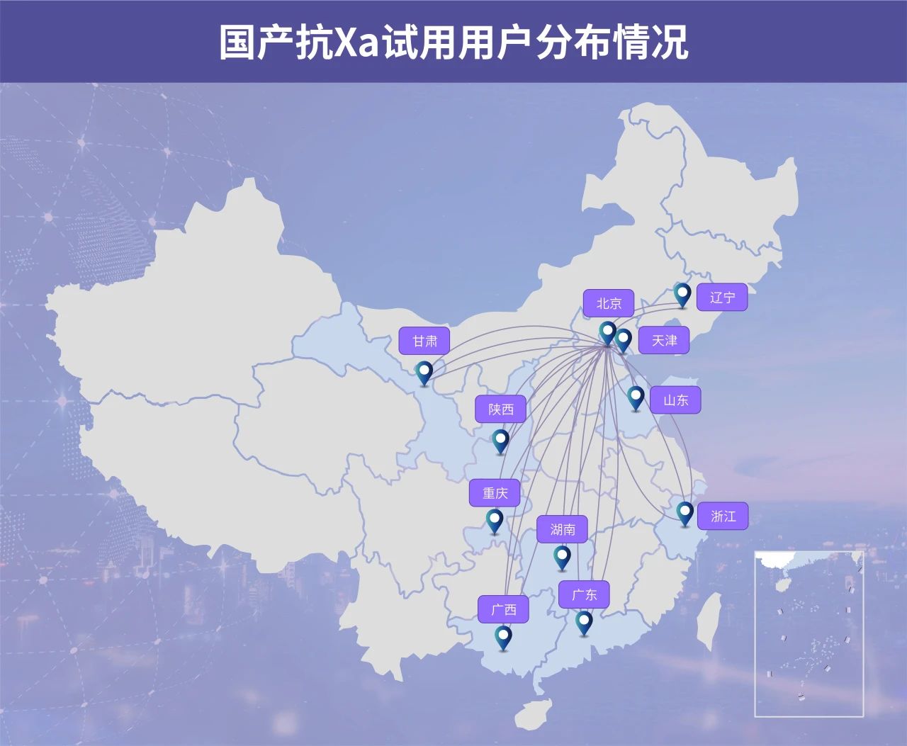 經過嚴格的三甲醫院多中心驗證,國產抗Xa獲證上市。九強抗Xa測定試劑盒(發色底物法)適用于三大主流機型,質量可靠,受到廣泛關注,各地試用如火如荼的進行中。據**統計,全國已有11個省份的用戶積極參與試用,其中包括北京、天津、浙江等地的多家三甲醫院。