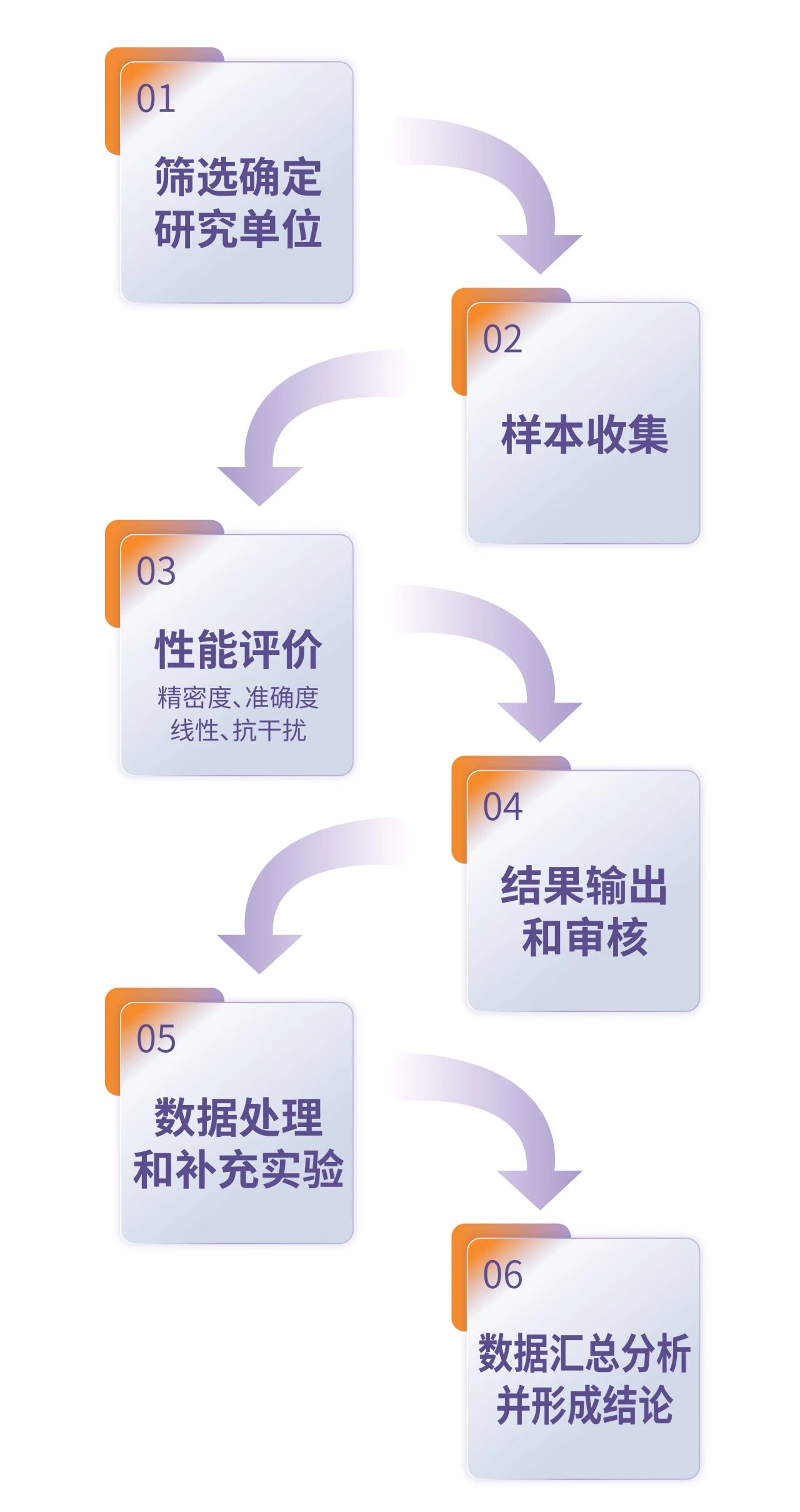 多中心性能驗證,要求至少3家單位在規定時間內、依據同一實驗方案并使用相同批號試劑對項目性能進行評估,最終匯總各單位檢測結果進行比對及綜合評估。