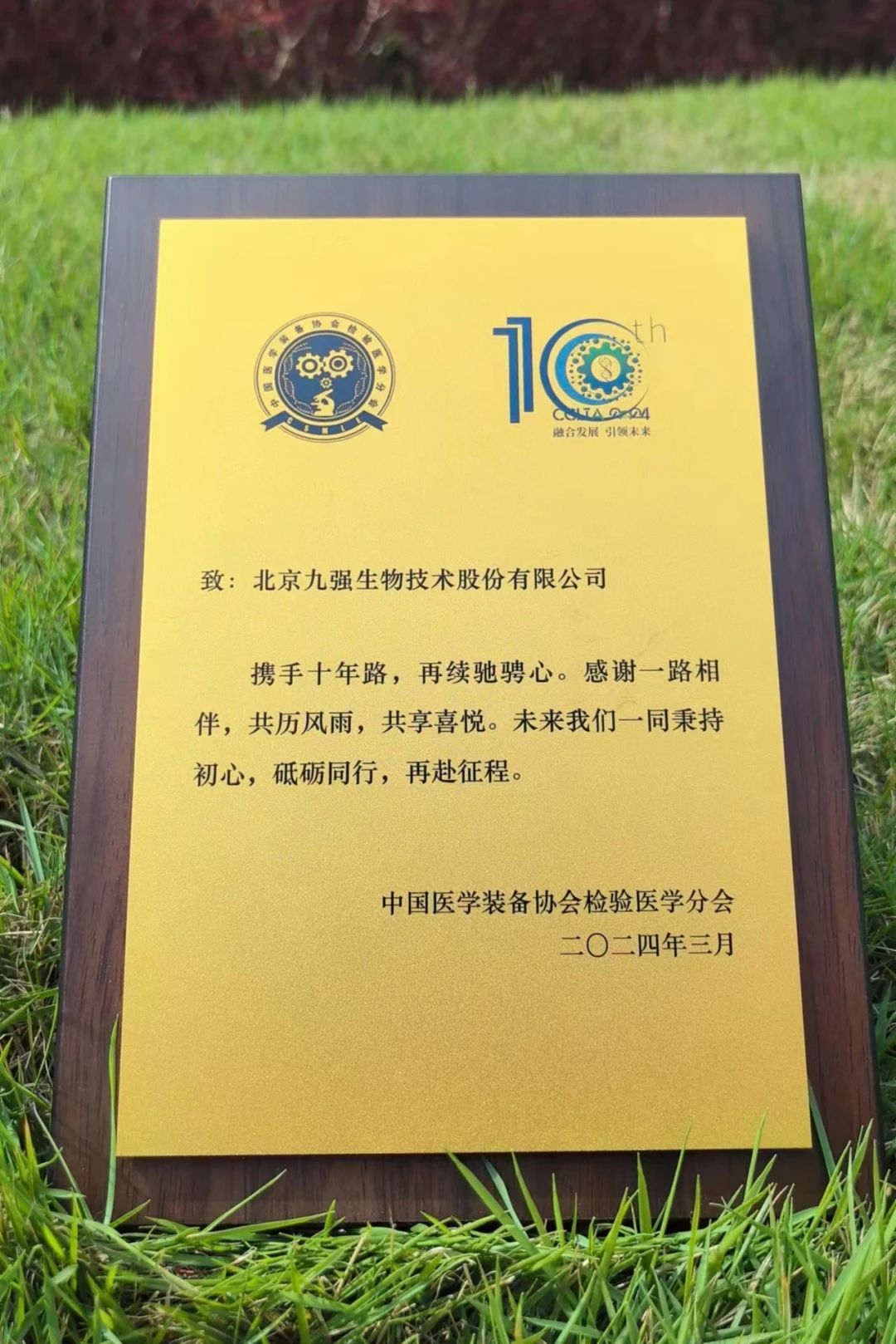 大會期間,中國醫學裝備協會檢驗醫學分會第三屆委員會第三次全體委員會議同步召開,九強生物董事長鄒左軍先生出席并上臺領取十周年企業感謝狀。CCLTA迎來十周年,在深耕學術、以發展為中心的精耕理念下,實現檢驗醫學事業的大步拓新。