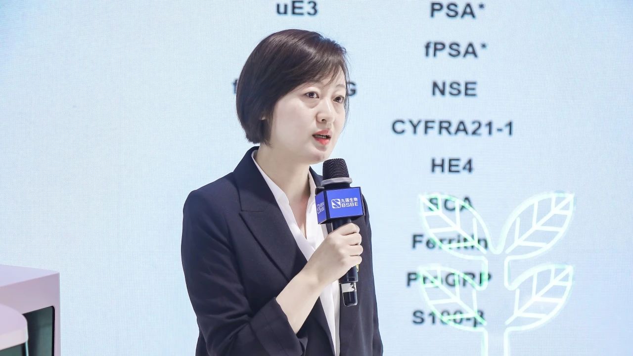 九強(qiáng)生物化學(xué)發(fā)光產(chǎn)品市場經(jīng)理王東旭女士圍繞化學(xué)發(fā)光檢測系統(tǒng)解決方案進(jìn)行了非常詳細(xì)的講解。九強(qiáng)Gi發(fā)光擁有精準(zhǔn)、便捷、全面、節(jié)約等品質(zhì),成就精準(zhǔn)檢測。