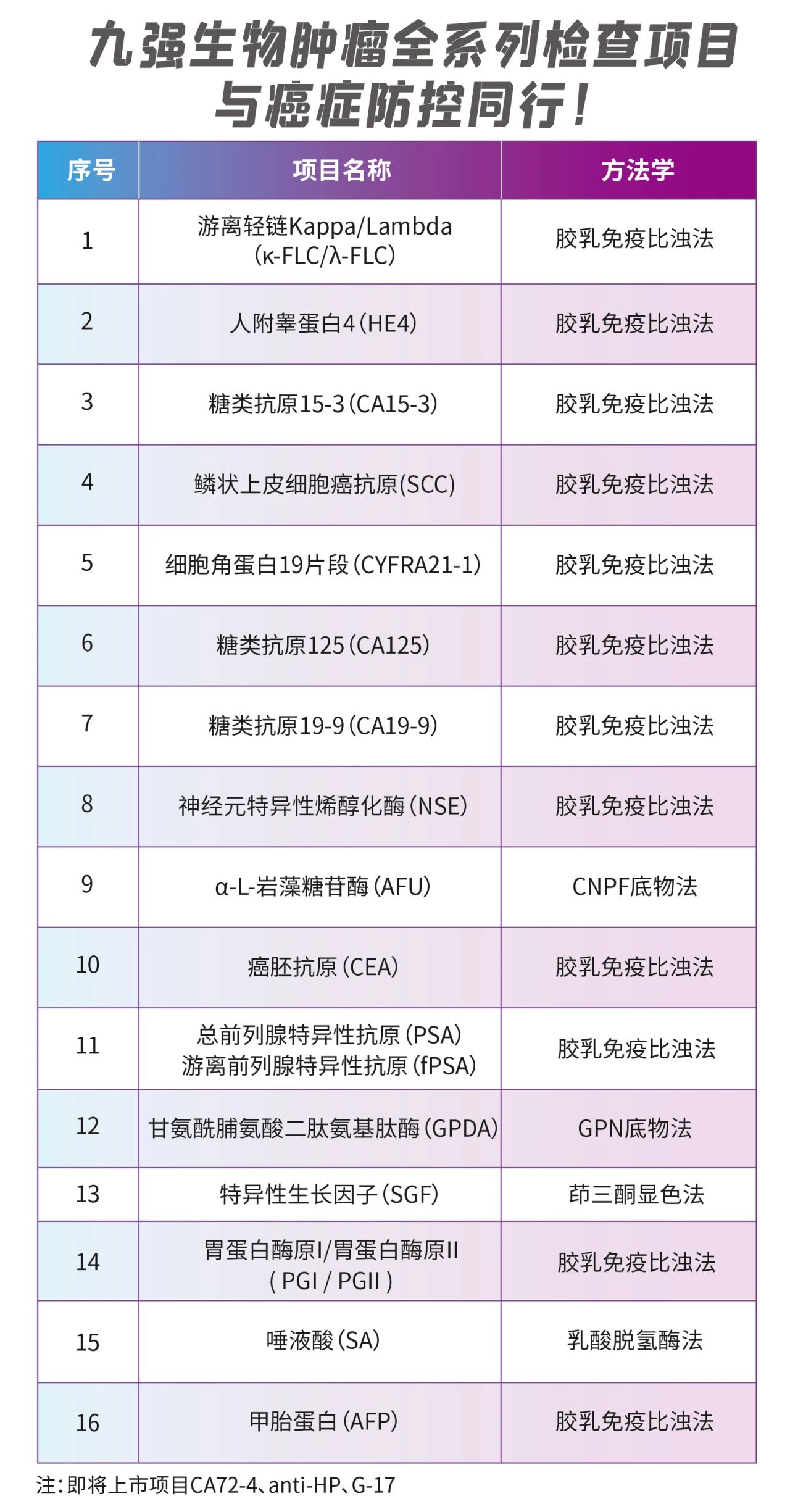 ① 全面的腫瘤項目菜單,涵蓋常見腫瘤的標志物