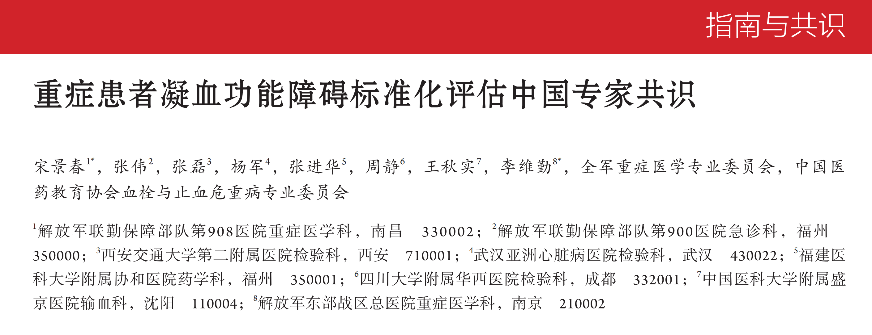 本篇文章依托《重癥患者凝血功能障礙標(biāo)準(zhǔn)化評(píng)估中國(guó)專(zhuān)家共識(shí)》編寫(xiě)