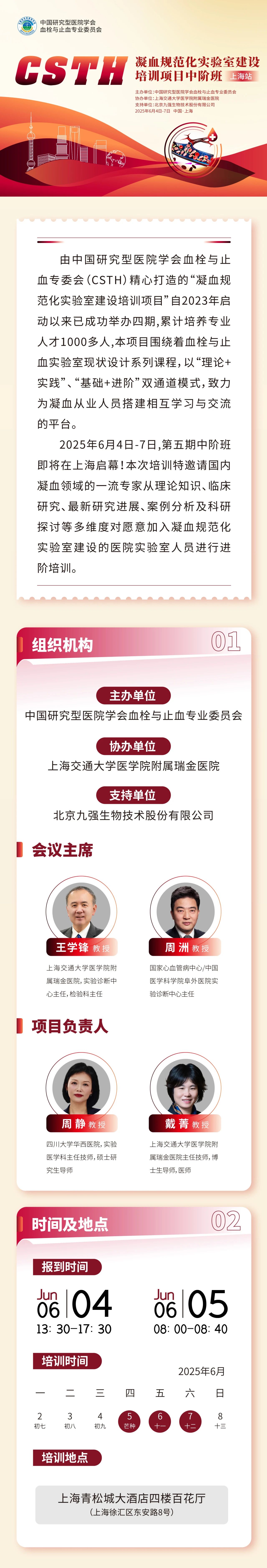 【第二輪通知】CSTH凝血規范化實驗室建設培訓項目中階班(上海站)